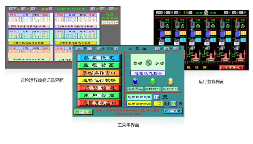 消防安全巡检系统用于企事业单位和高层住宅消防系统日常自动或手动巡检,系统采用可编程控制器、变频调速器及人机界面等控制技术,对消防水泵进行定周期、定时间、定转速的巡检,及时发现问题,使消防水泵长期保持在可靠运行状态。系统符合国家标准